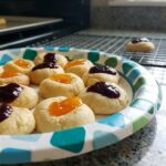Carefully spoon about a half teaspoon of apricot jam into each indentation. Do not overfill, as the jam will bubble and expand slightly in the heat. Bake one pan at a time for 10 to 12 minutes. You want the bottoms to be a pale golden brown and the jam to be bubbly. Let them cool on the sheet for at least ten minutes to firm up before moving them to a wire rack.